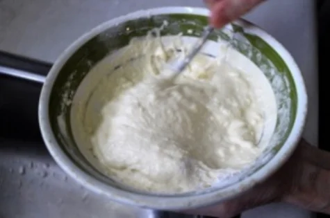 Once the mixture becomes the consistency of pancake batter you can add the remaining ingredients
